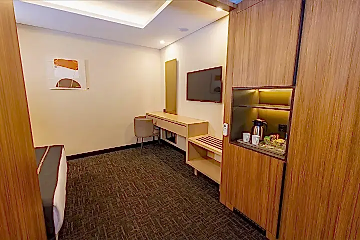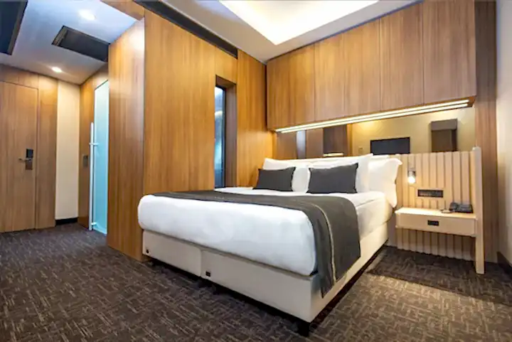 20 metrekarelik engelli dostu odamız, konfor ve zarafetin mükemmel uyumunu sunmaktadır. Modern tasarımı ve işlevsel düzeni ile dikkat çeken bu özel oda, misafirlerimizin tüm ihtiyaçlarını karşılamak üzere özenle donatılmıştır. Özel olarak tasarlanmış yatak odası alanı, mobilyaları, banyo alanı, engelli misafirlerimizin konforunu maksimum seviyede sağlamak üzere düzenlenmiştir.